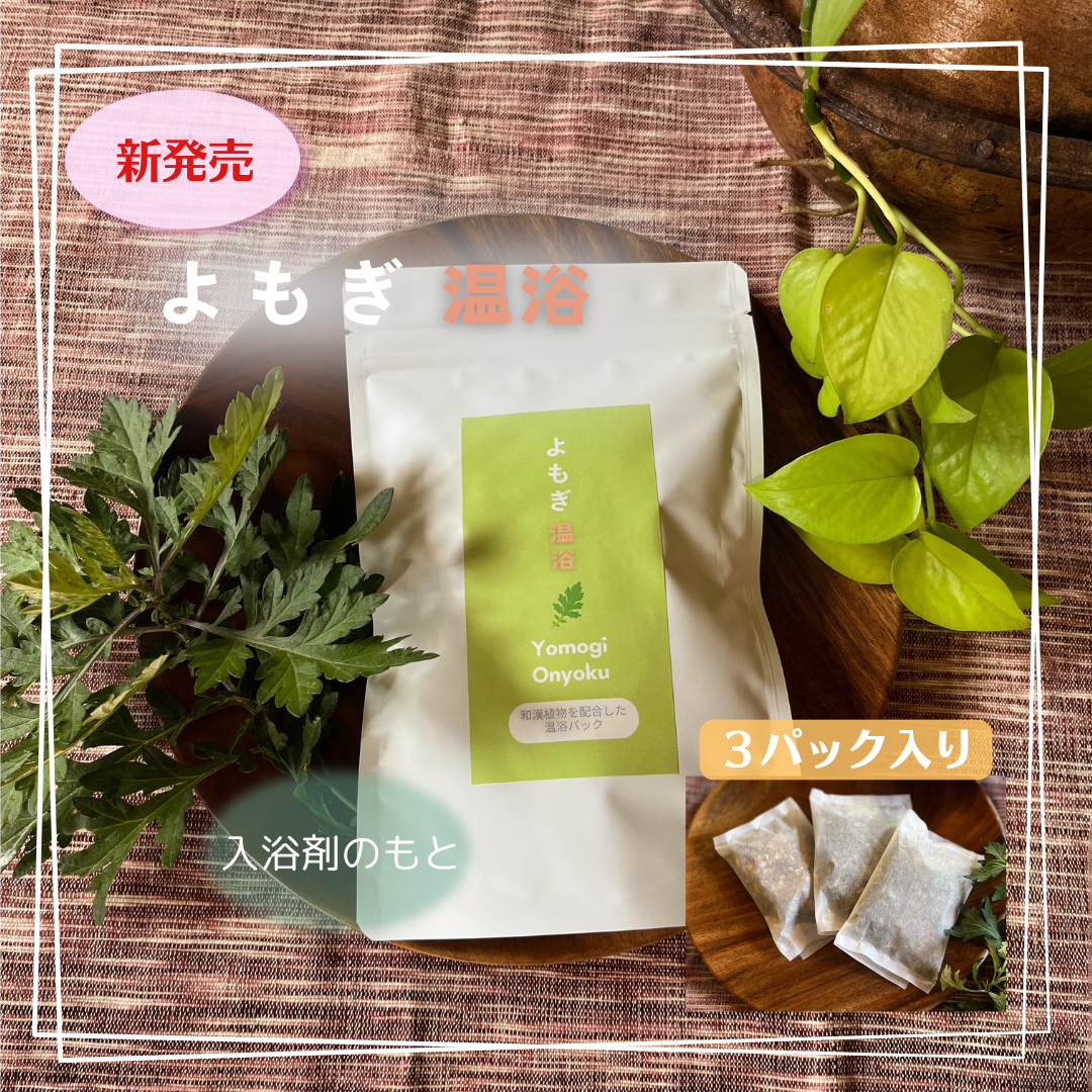 ヨモギと和漢植物を配合した、入浴剤のパックです。